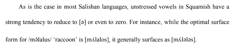 Secwepemctsin: Gibson (1973) provides accounts of multiple alternations which occur in different phonological environments, as is demonstrated in the following example.
