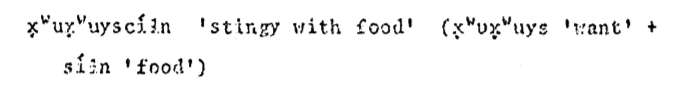 In Halkomelem, compounding seems very rare or almost non-existent. (Suttles, 2004, p. 23)