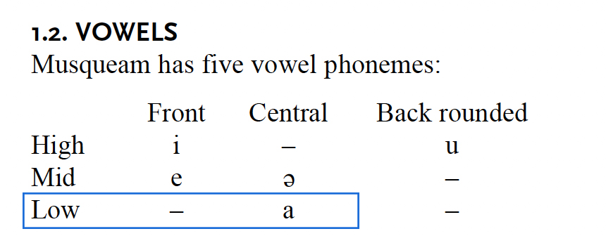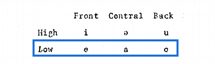 - The following vowels that are enclosed in blue are those that can be described as [+low], in terms of tongue height.