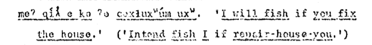 Example in the Halkomelem Context of a Complex Sentence (Suttles, 2004, p. 95)