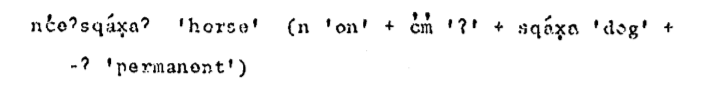 Example in the Secwepemctsín Context of a Compound Stem, Morphologically Segmented and Defined in Parentheses (Gibson, 1973, p. 39)